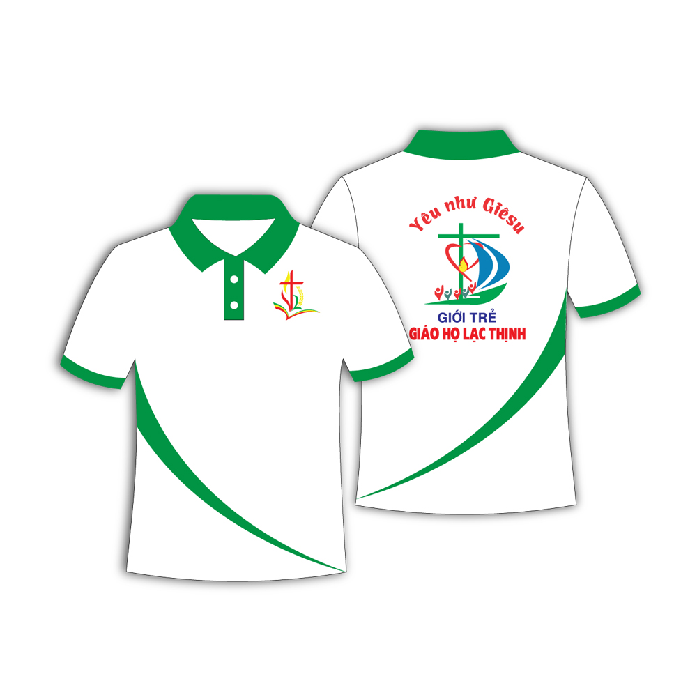 Thiết kế logo miễn phí: Điểm đặc biệt của áo là logo được in chuyển nhiệt sắc nét trước ngực và sau lưng áo. Logo của Giới Trẻ Công Giáo Giáo Họ Lạc Thịnh được thiết kế miễn phí hoàn toàn theo yêu cầu của khách hàng, mang lại sự khác biệt và độc đáo cho từng sản phẩm.