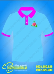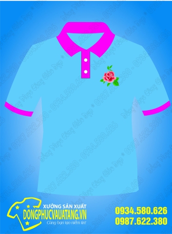 Màu áo: Màu xanh ngọc kết hợp bo cổ và bo tay màu hồng sen