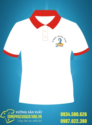 Màu áo: Màu Trắng, bo tay, bo cổ màu đỏ