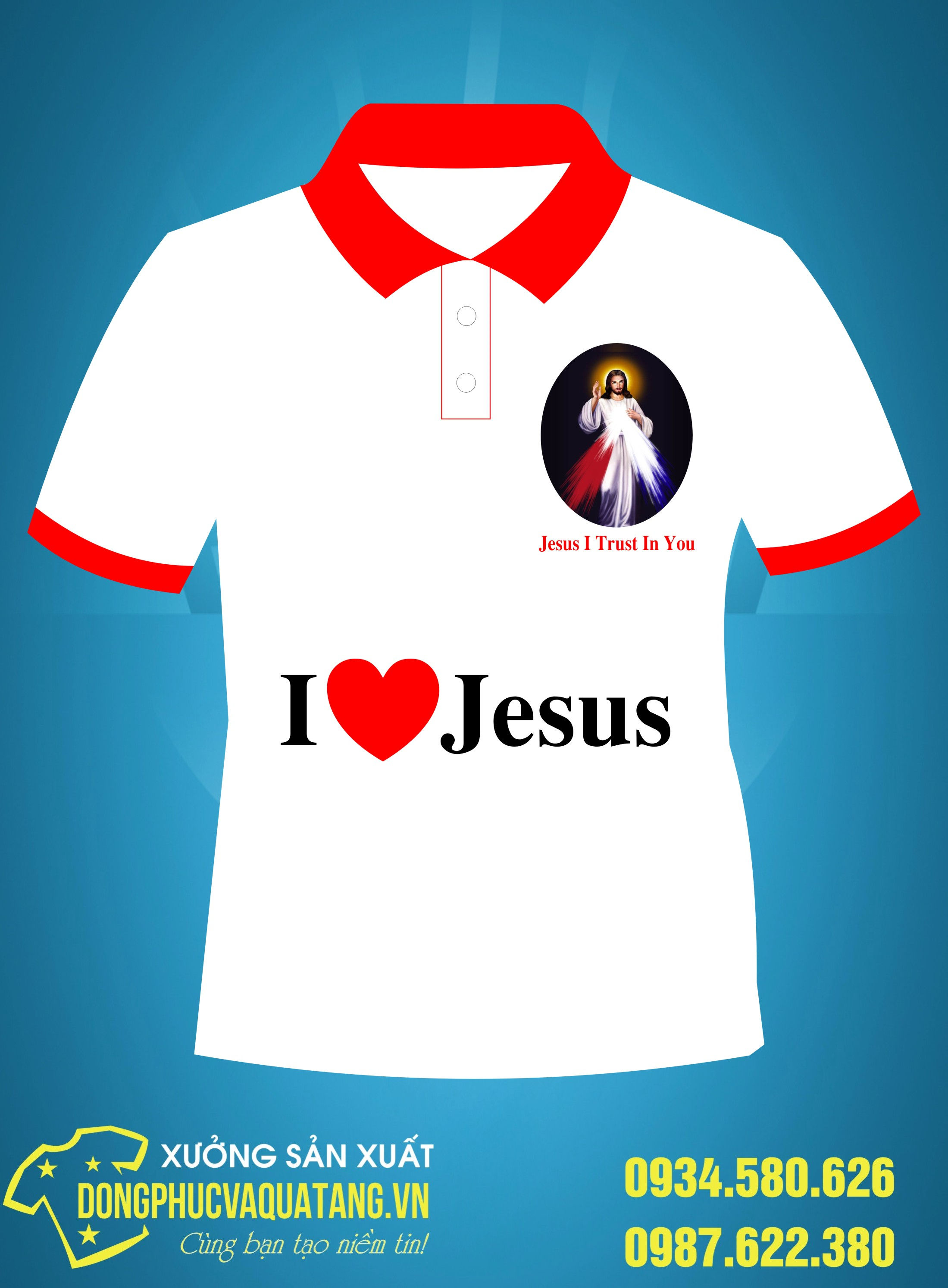 Màu áo: Đồng phục công giáo màu trắng bo tay, bo cổ màu đỏ tươi