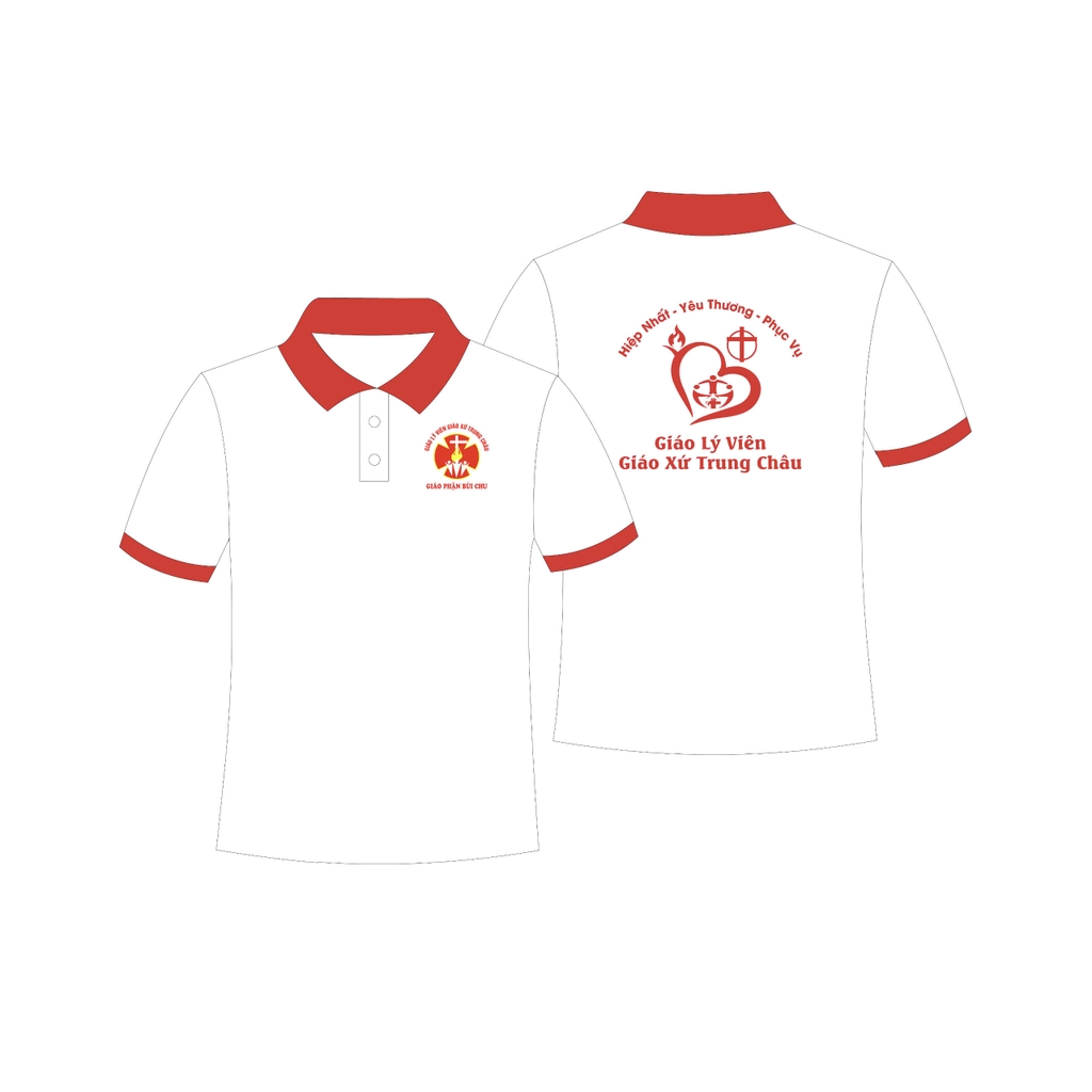 - Logo Giáo xứ Trung Châu: In sắc nét và bền bỉ ở vị trí ngực trái, thể hiện niềm tự hào và sự gắn kết giữa các thành viên trong cộng đoàn. Logo chính là dấu ấn khẳng định tinh thần đoàn kết của giáo xứ trên hành trình Đức tin.