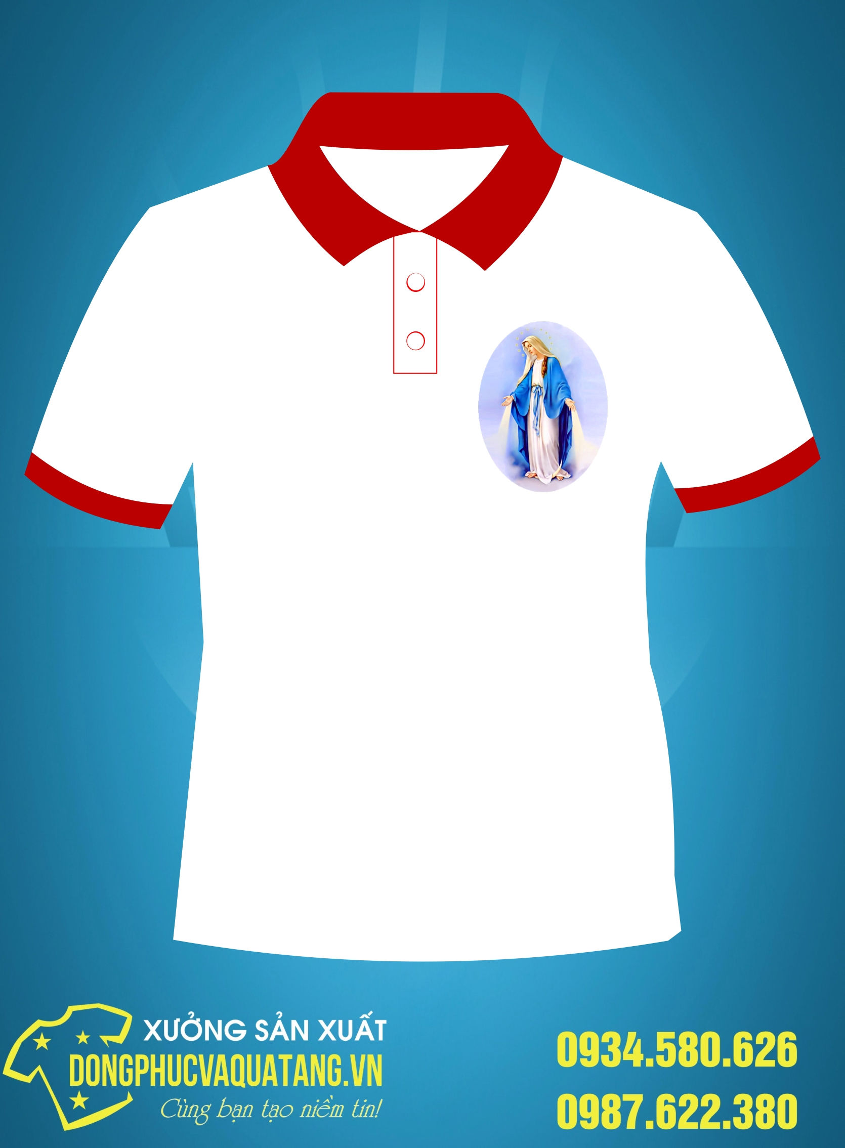 Màu áo: Đồng phục công giáo màu trắng bo tay, bo cổ màu đỏ tươi