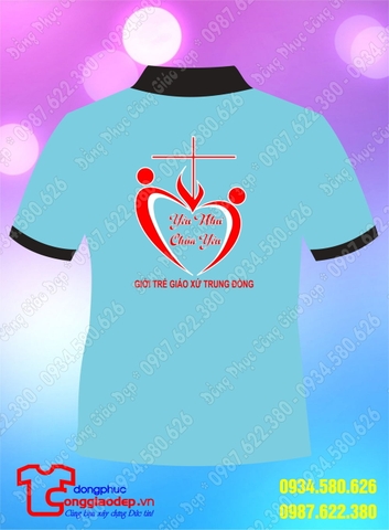 Màu áo: Đồng phục giới trẻ Giáo Xứ Trung Đồng màu xanh thiên thanh bo cổ và tay màu đen