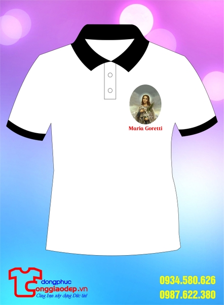 Màu áo: Đồng phục công giáo màu trắng , bo cổ bo tay màu đen