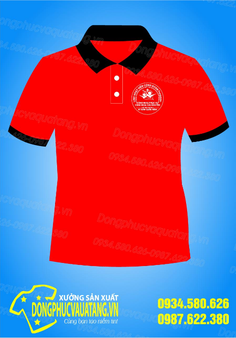Màu áo: Màu đỏ kết hợp bo cổ và bo tay màu đen