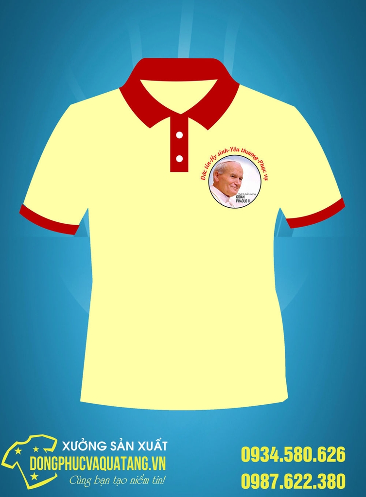 Màu áo: Đồng phục công giáo có màu vàng sữa, bo tay, bo cổ màu đỏ