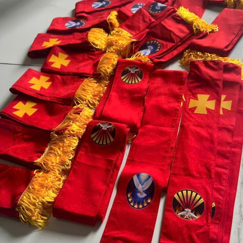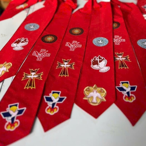 - Màu sắc tượng trưng: Chiếc khăn mang màu đỏ rực rỡ, màu của ngọn lửa Chúa Thánh Thần. Đỏ không chỉ là màu của lửa, mà còn là màu của máu, biểu tượng cho sự hy sinh và tình yêu mãnh liệt của Thiên Chúa dành cho nhân loại. Màu sắc này nhắc nhở các em về sự can đảm và lòng trung thành trong đời sống đức tin.