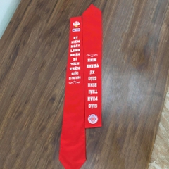 Chất liệu cao cấp: Khăn được làm từ chất liệu lụa mịn màng, nhẹ nhàng ôm sát cơ thể, mang lại cảm giác thoải mái trong suốt thời gian diễn ra nghi lễ. Chất liệu này không chỉ giúp khăn trở nên sang trọng mà còn tạo sự bền bỉ, giúp khăn có thể được lưu giữ như một kỷ niệm đáng nhớ.