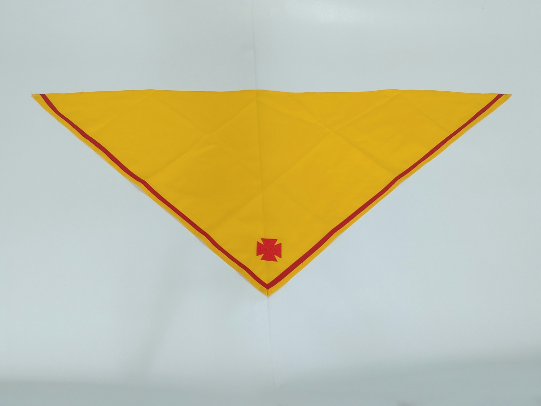 - Đặc điểm: Khăn nền đỏ, may viên vàng và thêu logo Thập Giá (Khẩu hiệu PHỤNG SỰ được thêu chìm)