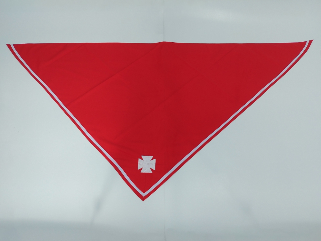 - Đặc điểm: Nền khăn đỏ may viền trắng và thêu logo Thập giá màu trắng (Khẩu hiệu NHIỆT THÀNH được thêu chìm)